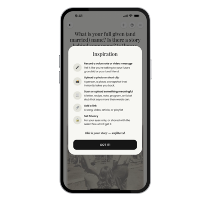 Not your typical memory book. The Life Unfiltered Journal is a guided digital experience full of funny, unexpected prompts brought to life with video, links, and scans.