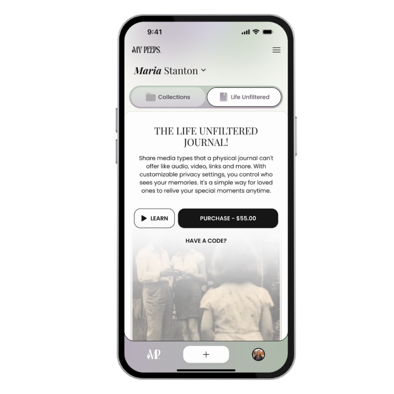 Your recipient will receive an email with a code. Download the My Peeps app, enter the code, start your storytelling journey.
