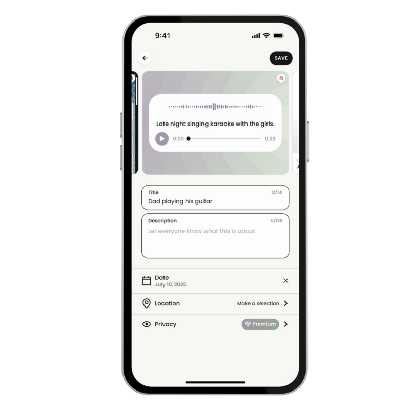 Every story can be recorded with video or audio, turning memories into experiences your family can relive again and again. It’s not just preserving history, it’s keeping your loved ones’ voices and personalities alive for generations.