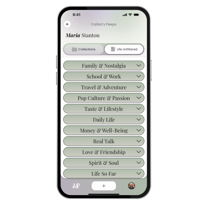 Unlike a book that sits on a shelf, every answer in the Life Unfiltered Journal can be shared instantly with the whole family, just one person, or even across multiple families. Stories don’t just get written down. They get lived, shared, and passed on.